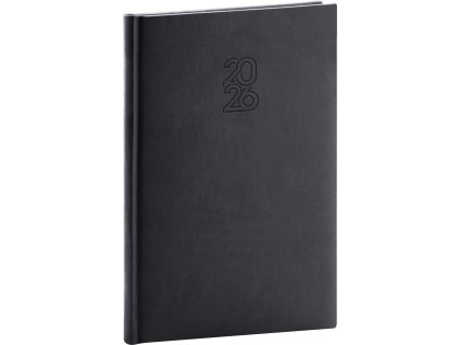 týdenní diář Aprint 2026 v černé barvě • kolekce vsadila na osvědčené barvy, které doplňuje nová ražba letopočtu • týdenní rozvrh s česko-slovenským kalendáriem a doplňkovou...