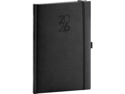 týdenní diář Aprint top 2026 v černé barvě • rozšíření oblíbené řady Aprint o variantu s gumičkou na zavírání a poutkem na tužku • týdenní rozvrh s česko-slovenským kalendáriem...