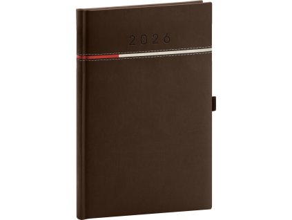 týdenní diář Tomy 2026 v hnědo-červené barvě • klasický povrch imitující kůži, který doplňuje jemné prošití • na materiál lze tisknout a je vhodný pro všechny typy ražeb •...