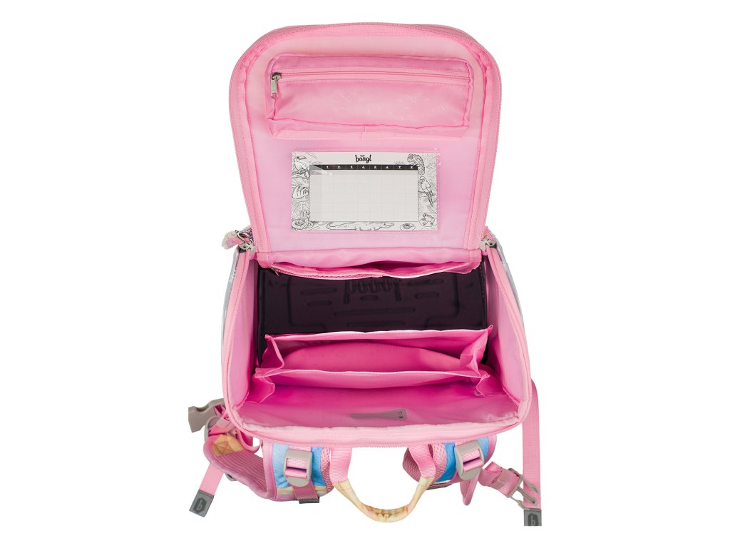 • ergonomická školní aktovka s vyztuženým tělem, vnitřním organizérem a třemi oddělenými kapsami • s motivem Rainbow Unicorn • posuvný zádový systém ERGO ADJUSTABLE SYSTEM umožňuje nastavení optimální polohy popruhů vzhledem k výšce dítěte • ergonomicky tvarovaná záda, plně nastavitelné ramenní, prsní a boční kompresní popruhy pro optimální přizpůsobení postavě • aktovka disponuje novým vyklápěcím systémem otevírání, díky kterému se školák snadněji dostane ke svým pomůckám přímo z lavice • uvnitř aktovky je průhledná kapsa s rozvrhem a vnitřní organizér umožňující rovnoměrné rozložení hmotnosti, doplněný gumičkou pro fixaci • boční kapsy z elastického materiálu, které jsou vhodné pro jednu z našich láhví na pití • izolovaná prostorná přední kapsa na suchý zip • lehká konstrukce drží stabilní tvar aktovky, hmotnost aktovky – 1 100 g • objem aktovky je 18 l a nosnost 6 kg • tělo aktovky je vyrobené z pevného voděodolného materiálu • reflexní prvky pro bezpečnost dítěte • aktovka je vybavena praktickou kulatou peněženkou • aktovky z řady ZIPPY byly testovány a certifikovány v akreditované zkušební laboratoři • vhodné pro 1.-2. třídu ZŠPLU: 16306