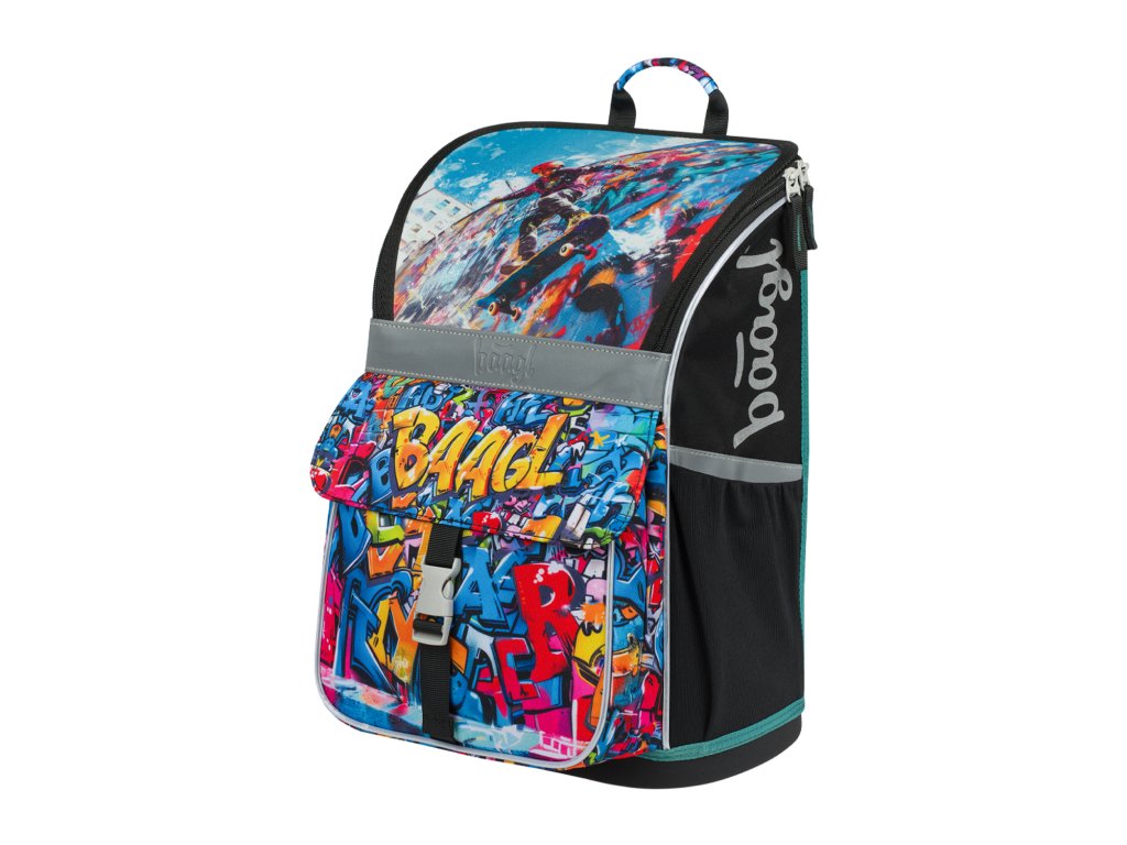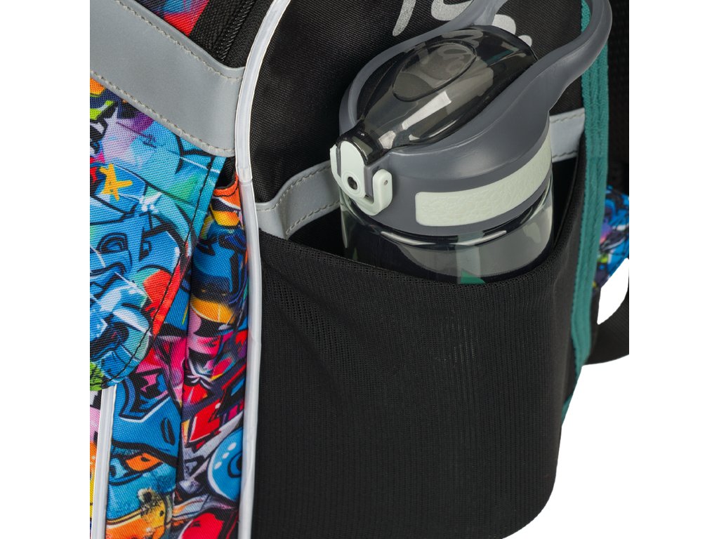 • ergonomická školní aktovka s vyztuženým tělem, vnitřním organizérem a třemi oddělenými kapsami • s motivem skatepark • posuvný zádový systém ERGO ADJUSTABLE SYSTEM umožňuje nastavení optimální polohy popruhů vzhledem k výšce dítěte • ergonomicky tvarovaná záda, plně nastavitelné ramenní, prsní a boční kompresní popruhy pro optimální přizpůsobení postavě • aktovka disponuje novým vyklápěcím systémem otevírání, díky kterému se školák snadněji dostane ke svým pomůckám přímo z lavice • uvnitř aktovky je průhledná kapsa s rozvrhem a vnitřní organizér umožňující rovnoměrné rozložení hmotnosti, doplněný gumičkou pro fixaci • boční kapsy z elastického materiálu, které jsou vhodné pro jednu z našich láhví na pití • izolovaná prostorná přední kapsa na suchý zip • lehká konstrukce drží stabilní tvar aktovky, hmotnost aktovky – 1 100 g • objem aktovky je 18 l a nosnost 6 kg • tělo aktovky je vyrobené z pevného voděodolného materiálu • reflexní prvky pro bezpečnost dítěte • aktovka je vybavena praktickou kulatou peněženkou • aktovky z řady ZIPPY byly testovány a certifikovány v akreditované zkušební laboratoři • vhodné pro 1.-2. třídu ZŠPLU: 16304