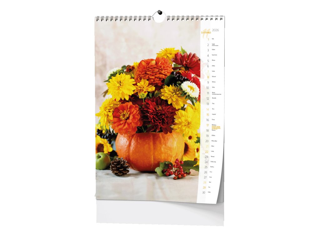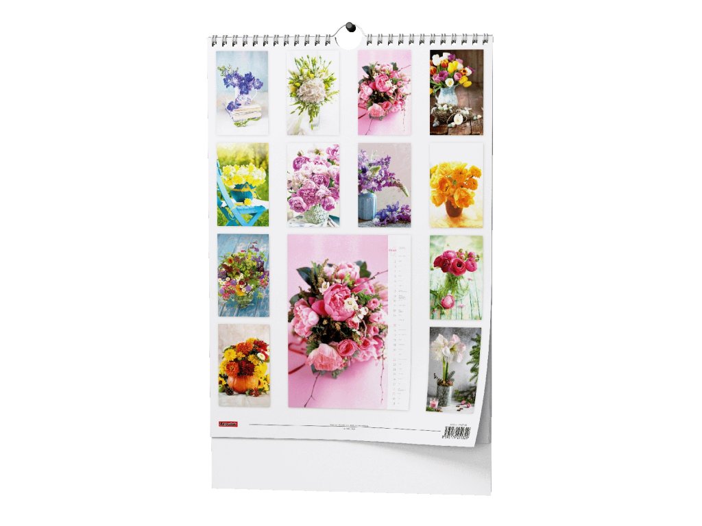 nástěnný kalendář s obrázky barevných kytic a květů • kalendárium: jmenné kalendárium se státními svátky • rozměr: 320x450 mm • vhodná technika potisku: sítotisk, UV tisk • BNG7-26PLU: 187843