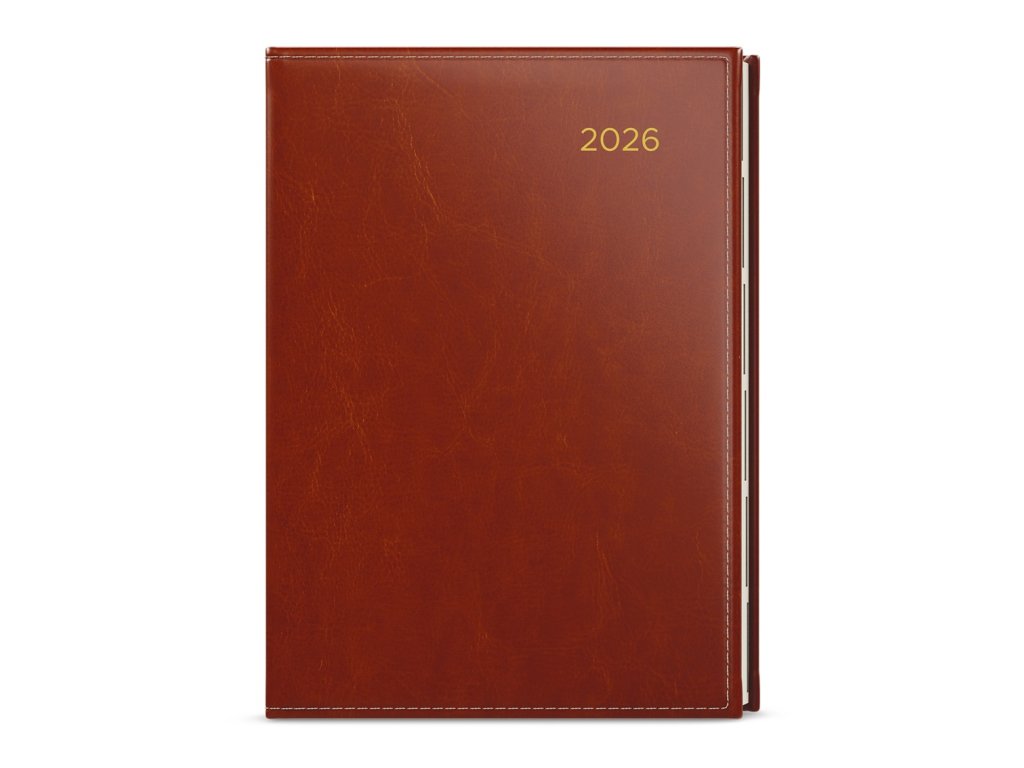 denní diář A5 vyrobený z hnědé koženky s moderní zlatou ražbou roku • diář, který povýší jakoukoli vaši schůzku • výjimečností tohoto diáře je, že soboty i neděle jsou na každé stránce zvlášť • kalendárium: časové rozmezí 6:00 - 21:30, měsíční fáze, roční období, letní a zimní čas, znamení zvěrokruhu, odpočet dnů, měsíční tabulkový přehled, dny a měsíce v jazycích - CS, SK, EN, DE, mezinárodní svátky: CZ, SK, A, D, PL, H, GB, E, F, I, UA • informační stránky: osobní údaje, přehledný kalendář aktuálního roku a následujícího roku, měsíční plánování aktuálního roku, plán dovolených aktuálního roku, přehled státních svátků a významných dnů CZ/SK, jmenný seznam CZ/SK, daňový kalendář CZ/SK aktuálního roku, mezinárodní svátky, důležitá telefonní čísla, roční plánovací kalendář CZ/SK aktuálního roku, místo pro poznámky, mapa CZ/SK, zadní předsádka - kapsa • rozměr: 143x205 mm • vhodná technika potisku: ražba, ražba přes pásku, sítotisk • BDCk17-7-26PLU: 187086