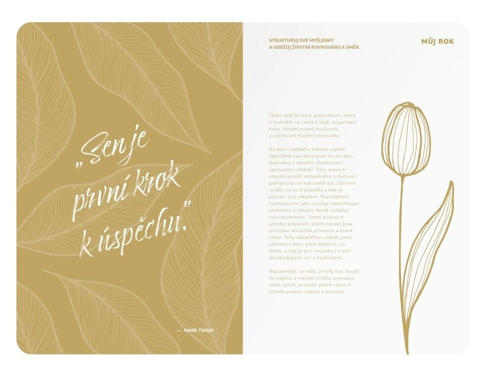 týdenní diář • formát lady size 130 x 190 mm • 180 stran • 80 g papír • prostor pro vaše přání a priority • strany pro plány a vize na rok 2026 v osobním i pracovním životě • přehledový kalendář • plánovací kalendář • týdenní kalendárium • To Do list pro každý týden • zhodnocení měsíce • kruh rovnováhy • aktivity tracker • motivační citáty • prostor pro tipy na knihy, filmy, výlety • strany pro seznamy věcí, co nezapomenout • prostor pro tipy na dárky • poznámky • samolepky • PVC kapsa na přední desce • záložková stužka • gumička na zavření • materiál desek: koženka se sleporažbou • 26-LAD-091PLU: 18014