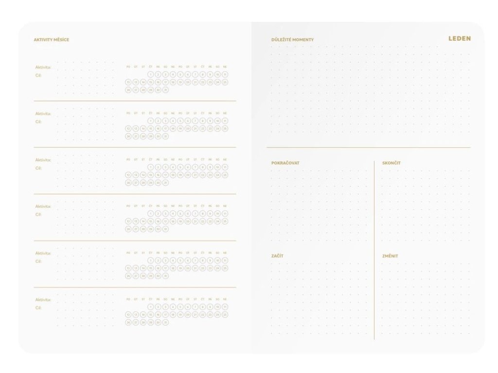 týdenní diář • formát A5 (148 x 210 mm) • 240 stran • 80 g papír • prostor pro přehled a vize na rok 2026 • strategické plánování dlouhodobých i krátkodobých cílů podle metody SMART • přehledový kalendář • měsíční plánovače • týdenní kalendárium • To Do list pro každý týden • aktivity tracker za každým měsícem • efektivní zhodnocení každého měsíce • zhodnocení roku 2026 • prostor pro tipy na knihy, filmy, výlety • strany pro seznamy věcí, co nezapomenout • prostor pro tipy na dárky • poznámky • PVC kapsa na přední desce • samolepky• materiál desek: tištěný potah, lamino soft touch • stříbrná ražba • 26-SMA5-096PLU: 18018