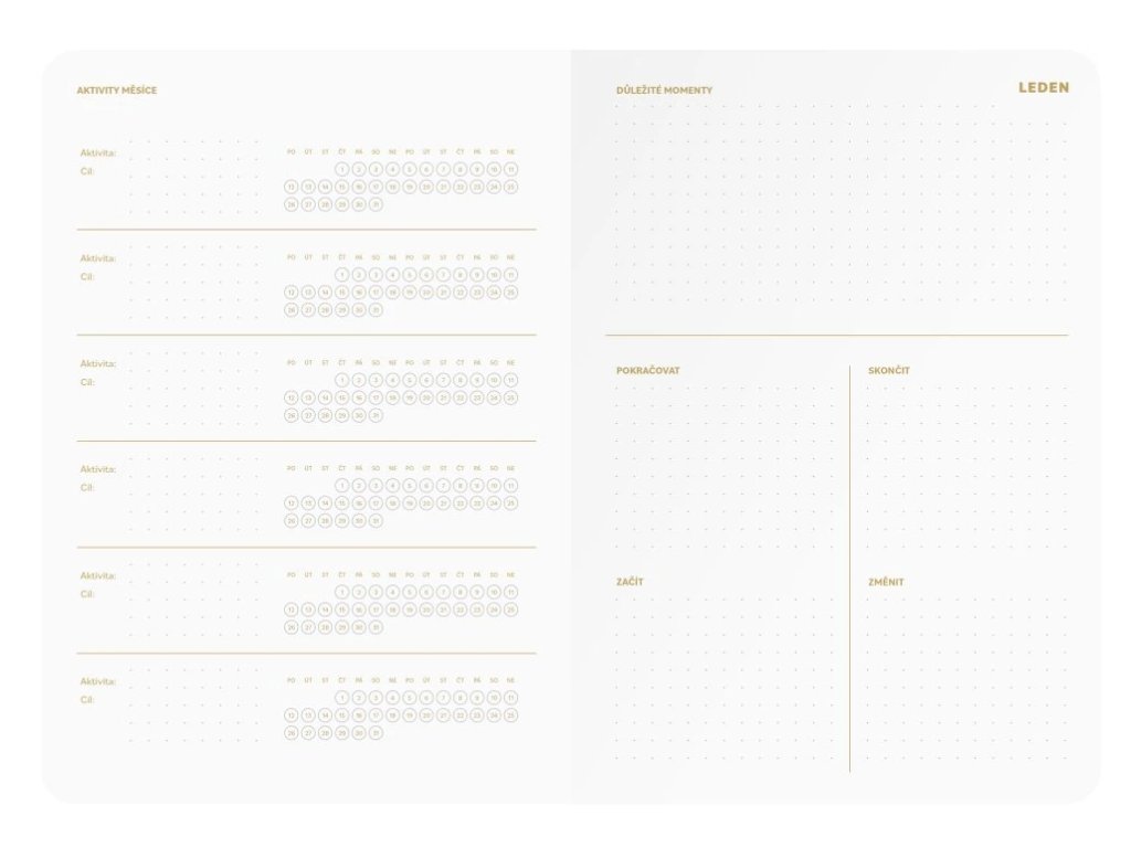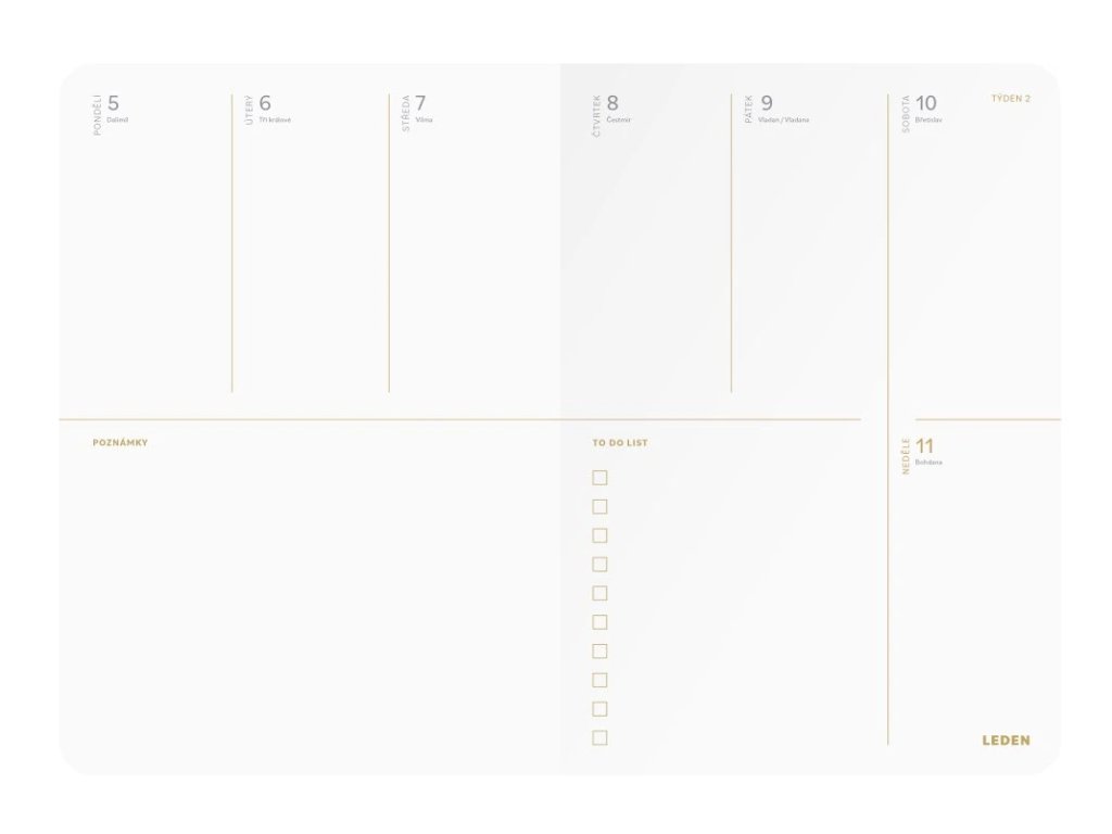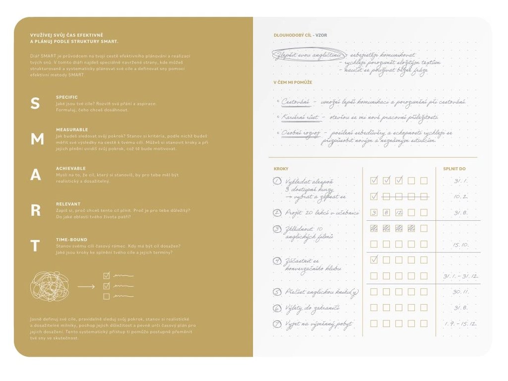 týdenní diář • formát A5 (148 x 210 mm) • 240 stran • 80 g papír • prostor pro přehled a vize na rok 2026 • strategické plánování dlouhodobých i krátkodobých cílů podle metody SMART • přehledový kalendář • měsíční plánovače • týdenní kalendárium • To Do list pro každý týden • aktivity tracker za každým měsícem • efektivní zhodnocení každého měsíce • zhodnocení roku 2026 • prostor pro tipy na knihy, filmy, výlety • strany pro seznamy věcí, co nezapomenout • prostor pro tipy na dárky • poznámky • PVC kapsa na přední desce • samolepky• materiál desek: potahový materiál s jemnou strukturou a metalickým efektem oceli • stříbrná ražba • 26-SMA5-092PLU: 18020