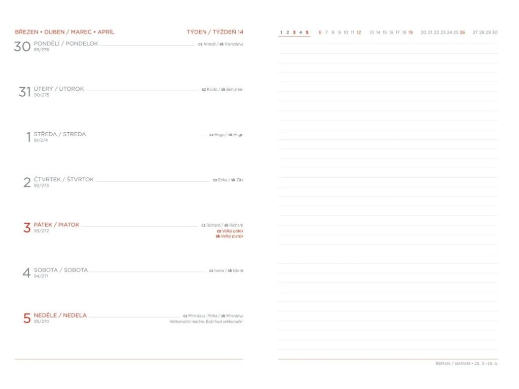 týdenní diář • formát A5 • 128 stran • 75 g bílý papír s certifikací FSC • uvnitř najdete: týdenní kalendárium s poznámkami, měsíční plánovač 2026 a 2027, daňový kalendář, plánovací kalendář 2026, přehledný kalendář 2026 a 2027 a místo pro vaše poznámky • materiál desek: koženka • 26-KA5-039PLU: 18013