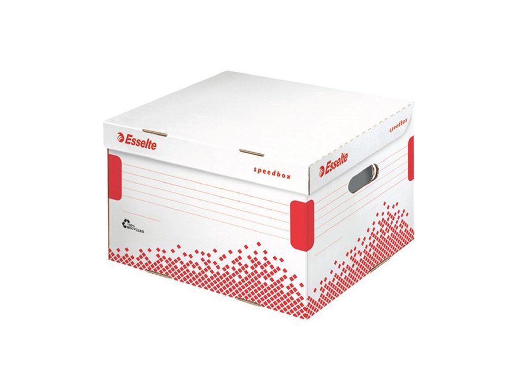 rozměr 367 x 263 x 325 mm • kapacita 3 krabice š. 100 mm/2 krabice š. 150 mm • rychle-složitelná archivační krabice s víkem • složení ve 3 snadných krocích / 5 vteřin • vyrobeno ze 100% recyklované lepenky • gramáž kartonu 400g/m2PLU: 129258
