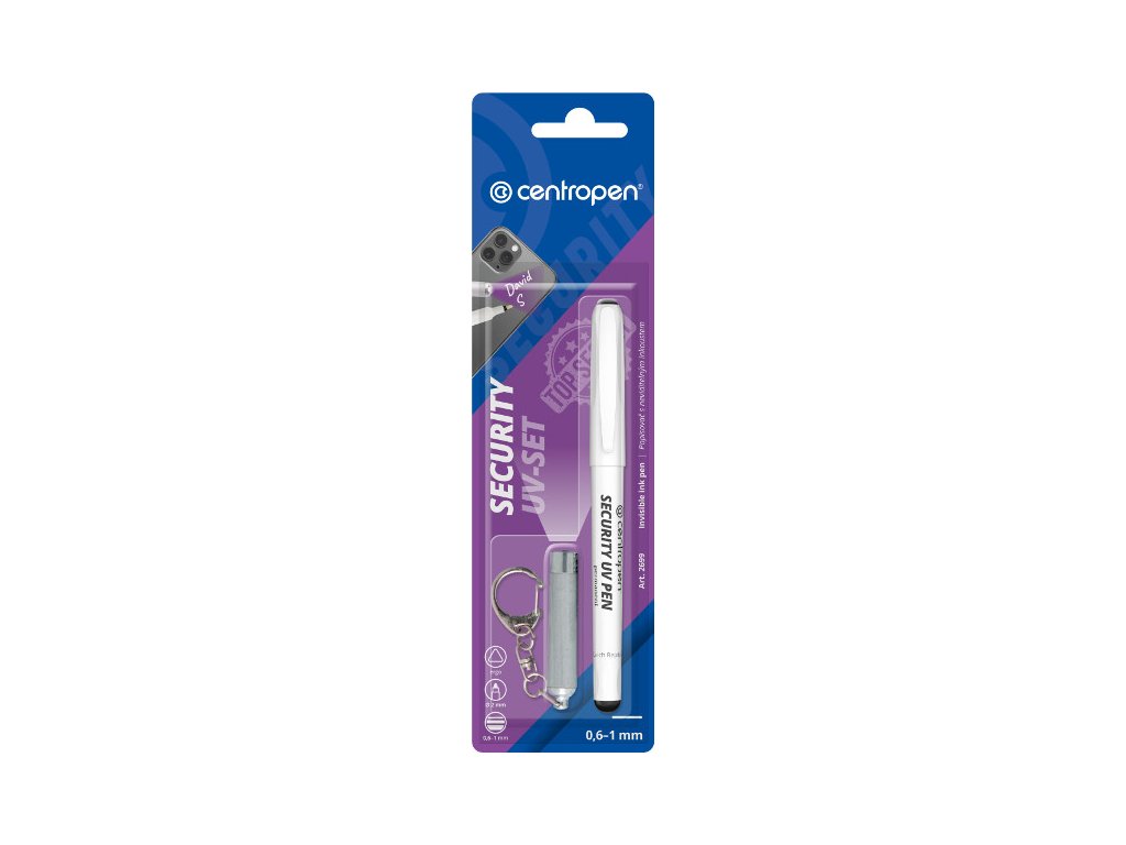 popisovač k označení cenných předmětů • ergonomické držení • speciální permanentní inkoust • stopa písma viditelná pouze pod UV lampou • kulatý hrot • šíře stopy 0,6 -1 mmPLU: 193089