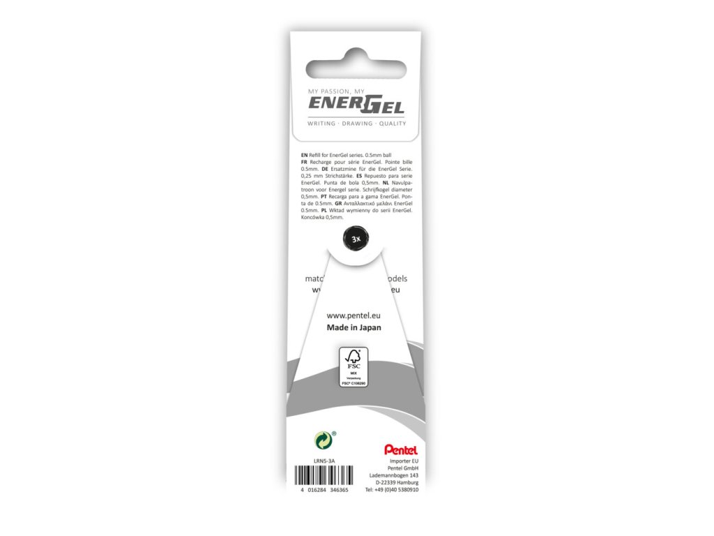 Gelové náplně 0,5 mm černé v sadě 3kusy EnerGel Pentel LRN5-A