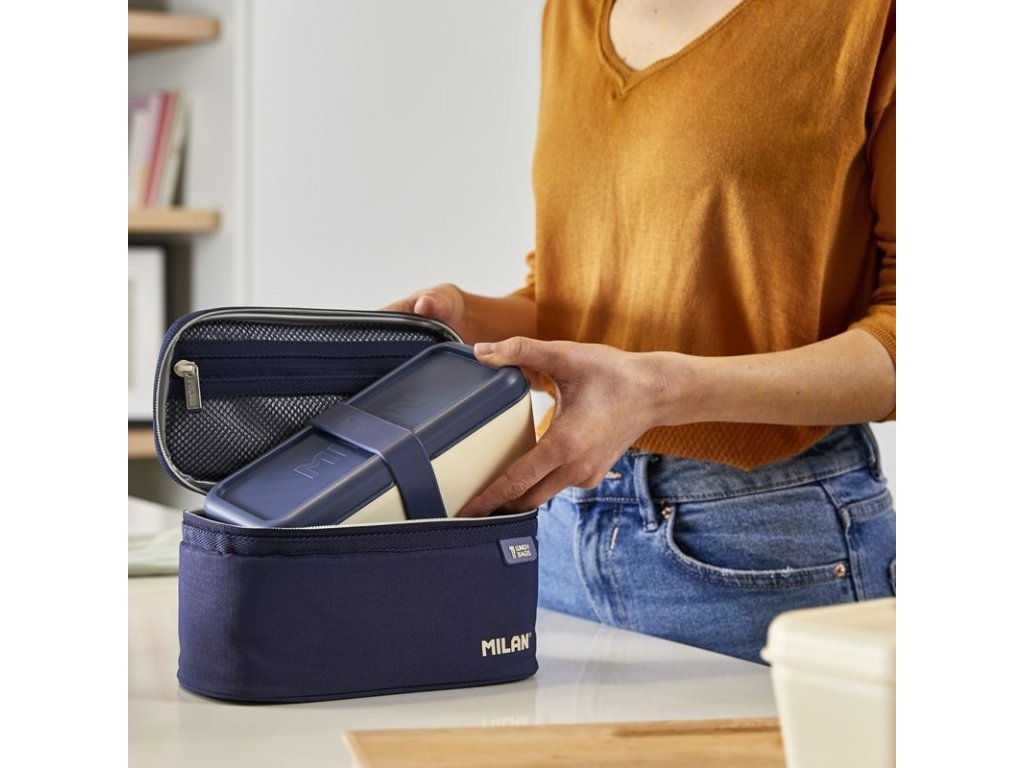 • izotermická taška na jídlo MILAN s obdélníkovým boxem • speciální řada MILAN 1918 tmavě modrá barva • obsahuje obdélníkovou krabičku na oběd s tmavě modrým víkem a bílou miskou • tepelně izolovaný interiér (studený / horký) pro lepší konzervaci potravin • úplné otevření pro lepší přístup a čištění • praktická kapsa na zip uvnitř • nastavitelný popruh • složení látky: polyesterová vnější tkanina a izotermická vnitřní podšívka (P.E.V.A.) • rozměry 22 x 12,5 x 12 cm • kapacita 1,5 litru • MILAN 08805SNCB LUNCH BOXPLU: 15666