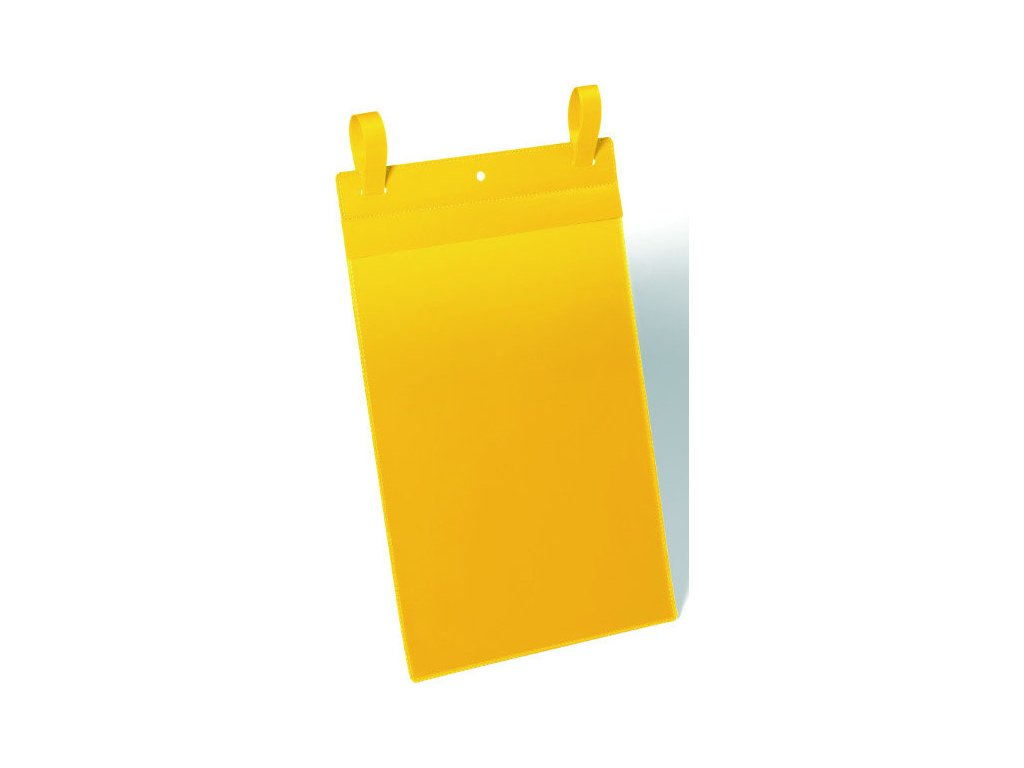 závěsné kapsy s upínacími popruhy ve tvaru šípu, které se ukotvují v otvoru kapsy • ideální pro trvalé použití ve skladu • vhodné pro vnější použití, protože ochranná zástěrka chrání dokumenty před prachem a vlhkostí • skvělé i pro pohyblivé přepravní pletivové kontejnery, protože kapsa zůstává bezpečně na místě i při silném pohybu • štítek lze skenovat bez nutnosti vyjímání z kapsy • druhý rozměr v tabulce je včetně délky popruhu • štítky lze individuálně nadefinovat na www.duraprint.eu • 50 ks v balení • vnitřní rozměr 210 x 297 mm • rozměr 223 x 530 mm • formát A4 na výšku • barva žlutáPLU: 169557