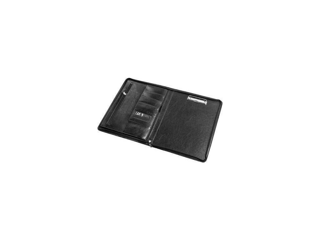 konferenční deska vyrobená z ekologické kůže • zapínání: na zip • tloušťka zad: 25 mm • vnitřní kapsa na zip • 4 vnitřní kapsy na vizitky (jedno z kapes s okénkem) • vnitřní poutka na pero • klipová deska • rozměry: 255 x 340 x 20 mm • barva: černáPLU: 18112