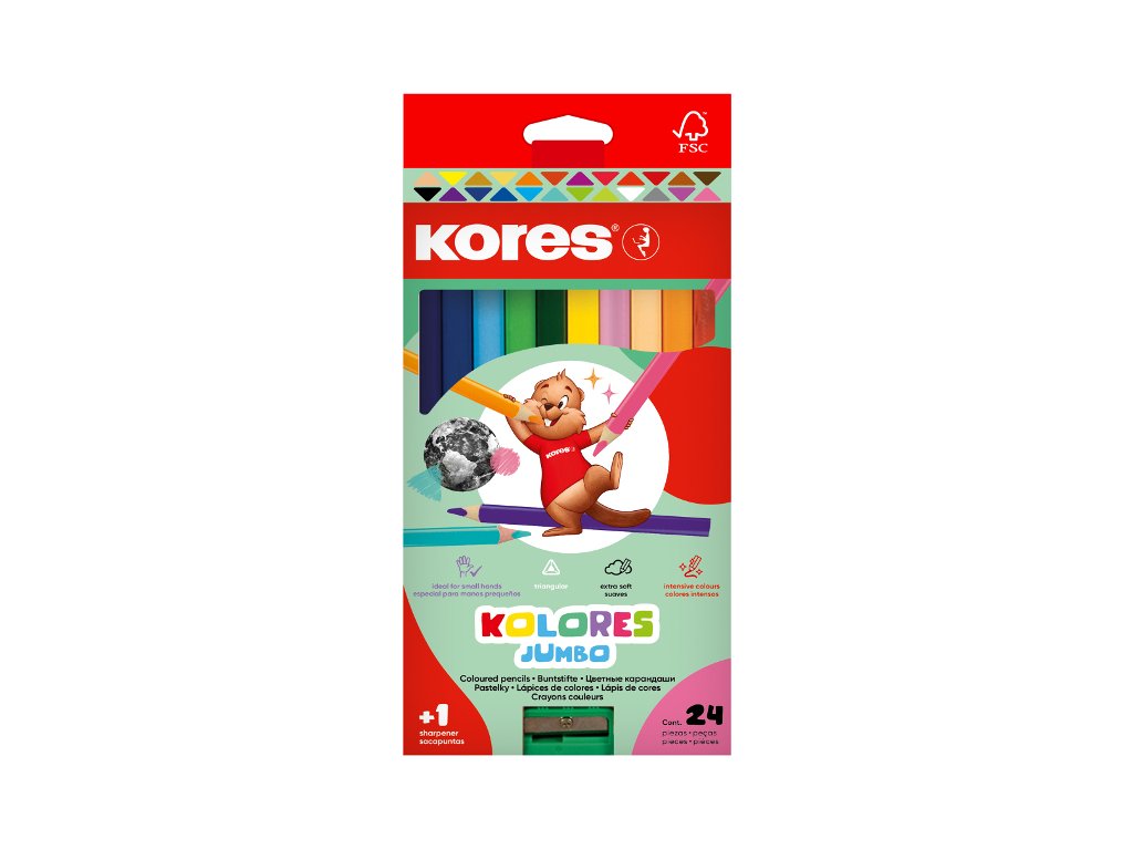 trojhranné • zářivé barvy díky vysokému obsahu pigmentu • z vysoce kvalitního lipového dřeva pro snadné ořezávání • ořezávátko v balení zdarma (kromě 401 107 a 402 029) • u provedení Jumbo je na pastelce políčko pro napsání jména • provedení: Jumbo • 24 barevPLU: 402486