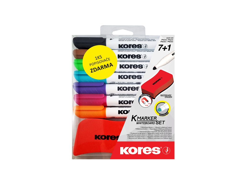 Kores popisovače 7 barev na bílé tabule sada s houbou