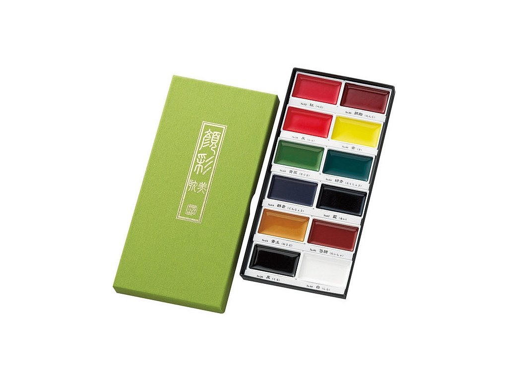 japonské tradiční akvarelové barvy Kuretake - GANSAI TAMBI pro výtvarníky a profesionální umělce • obsahují nádherný pigment na vodním základu • sada základních 12 barev • tyto akvarelové barvy mají široké využití - skici, ilustrace, sumi-e, Manga a další...POUŽITÍ: