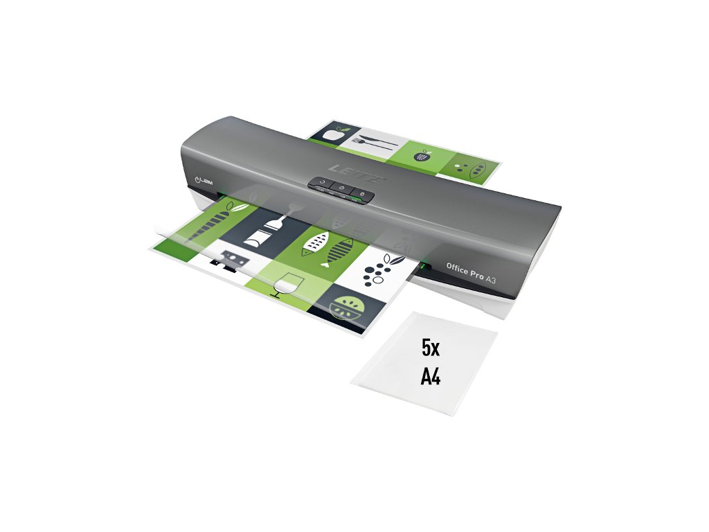 kompaktní laminátor s rychlým zahřátím • vhodný do menších kanceláří • doba zahřívání 1 min. • připravenost k laminování oznamuje zelená kontrolka a zvukový signál • nízká spotřeba energie s automatickým vypnutím po 30 minutách nepoužívání • rychlost laminace uvedena pro A4 80 mic kapsu • doporučeno používat s Leitz UDT laminovací fólií • součástí dodávky startovací balíček 10 laminovacích kapes • typ: Office Pro A3 • max tl.lamin.folie: 175 mic. • rychlost laminace: 40 sec. • rozměry: 169 x 498 x 110 mmPLU: 169453