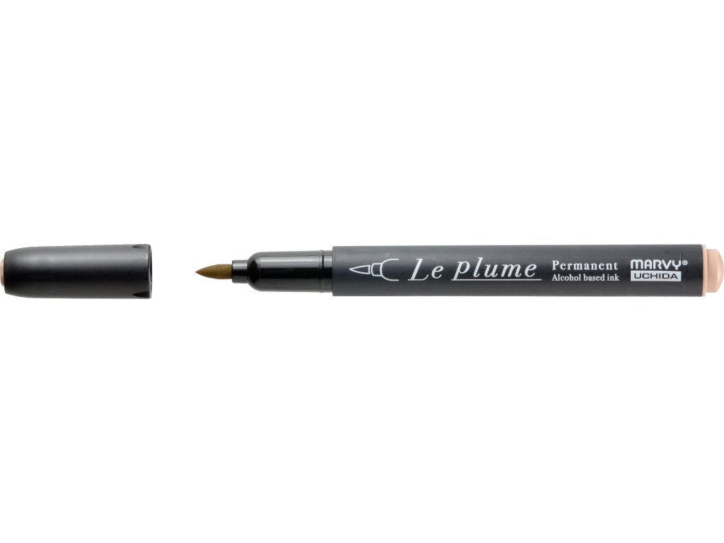 TAN • permanentní popisovač LePlume • profesionální štětečkový popisovač • jemný a pevný štětečkový hrot • alkoholový permanetní inkoust • skvělé pro kreslení manga, komiksu, karikatury, gesta, krajiny, skicování a vybarvováníPopisovače Marvy LePlume jsou k dispozici ve 168 barvách, takže je snadné najít dokonalý stín. 165 odstínů je na bázi alkoholu - permanentní, zatímco ostatní 3 jsou neprůhledné a pigmentované (bílá, zlatá, stříbrná).
