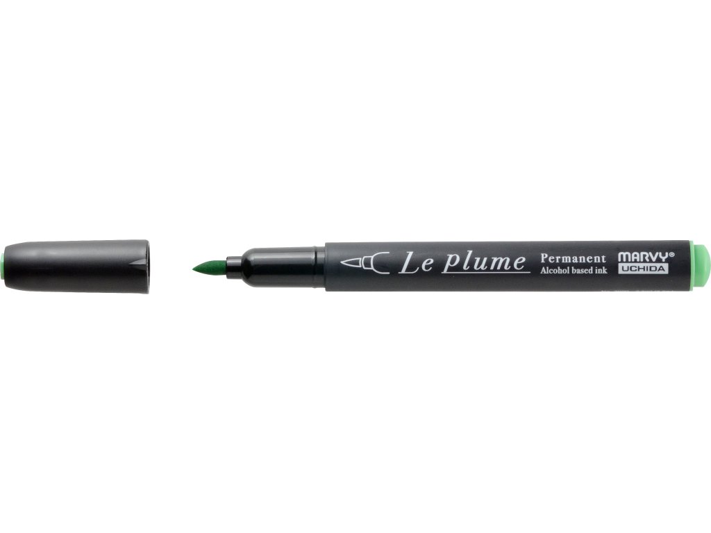 MINT GREEN• permanentní popisovač LePlume • profesionální štětečkový popisovač • jemný a pevný štětečkový hrot • alkoholový permanetní inkoust • skvělé pro kreslení manga, komiksu, karikatur gesta, krajiny, skicování a vybarvováníPopisovače Marvy LePlume jsou k dispozici ve 168 barvách, takže je snadné najít dokonalý stín. 165 odstínů je na bázi alkoholu - permanentní, zatímco ostatní 3 jsou neprůhledné a pigmentované (bílá, zlatá, stříbrná).
