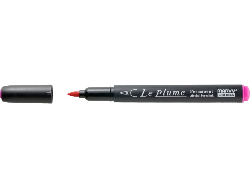 PINK•permanentní popisovač LePlume • profesionální štětečkový popisovač • jemný a pevný štětečkový hrot • alkoholový permanetní inkoust • skvělé pro kreslení manga, komiksu, karikatur gesta, krajiny, skicování a vybarvováníPopisovače Marvy LePlume jsou k dispozici ve 168 barvách, takže je snadné najít dokonalý stín. 165 odstínů je na bázi alkoholu - permanentní, zatímco ostatní 3 jsou neprůhledné a pigmentované (bílá, zlatá, stříbrná).