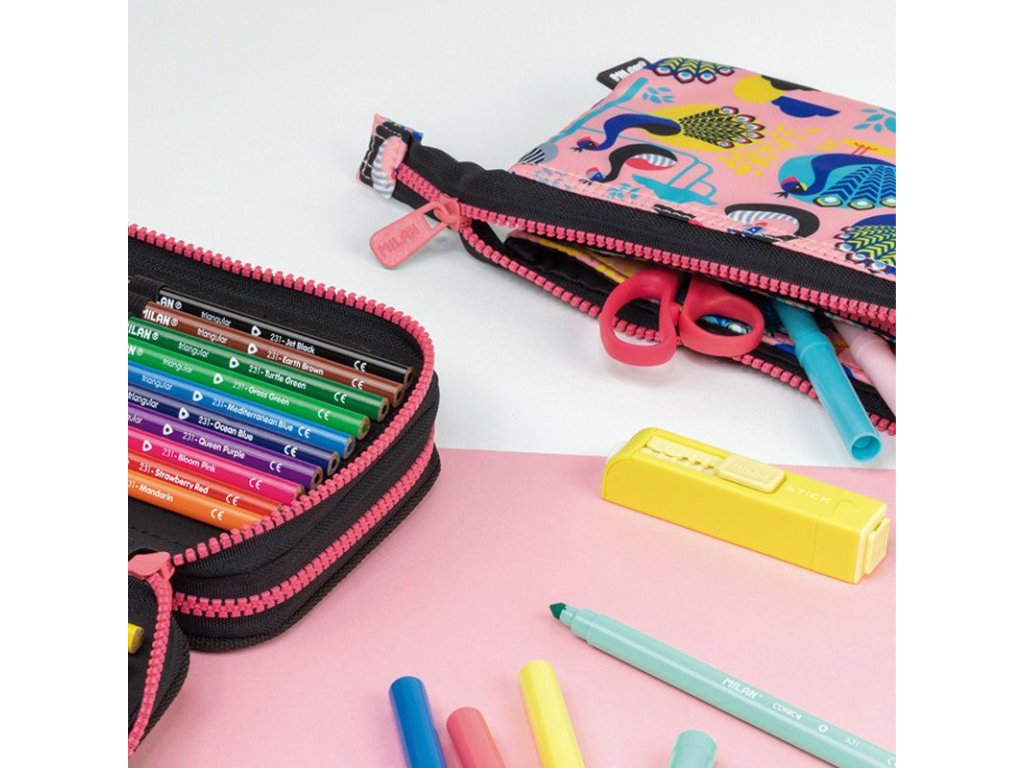 perečník, minipenál MILAN z kolekce Peacock Pink • růžová barva • složení látky polyesterová vnější látka i vnitřní podšívka • zapínání na zip • rozměry 20,5x 4,5 x 5 cm • MILAN 081129PCKPPLU: 13110