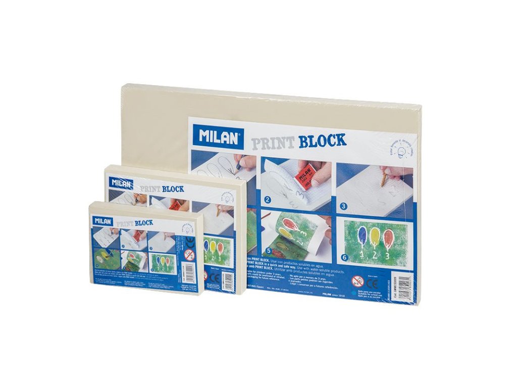 • deska ze syntetického kaučuku Print Block Medium MILAN 10 x 14,2 x 0,9 cm • snadná manipulace, vhodná pro použití dětmi • hladká deska s nízkou odolností pro snadnou práci s čepelemi rydel pro tisk vzorů, lze použít i ostrý konec štětce • po použití se snadno omyje a lze znovu použít • otisknoutí přímo zatlačením rukou • odpovídá evropským bezpečnostním předpisům • neobsahuje ftaláty ani aromatické přísady a je bez latexu • MILAN GMM101509 PRINT BLOCK MEDIUMPLU: 13069