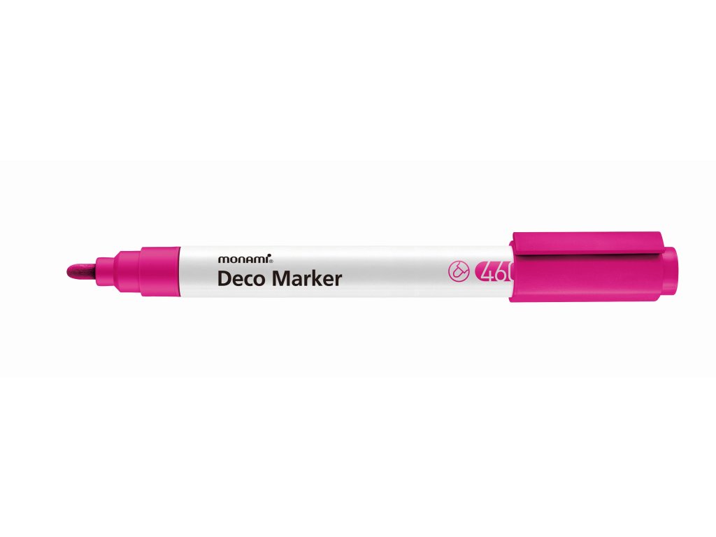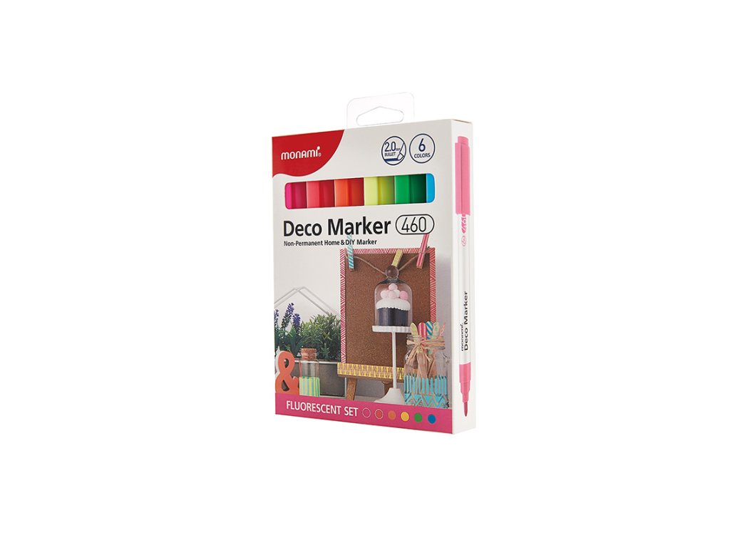 sada akrylových popisovačů na vodní bázi • síla hrotu 2 mm • neprůhledná stopa jasně viditelná i na tmavých površích • univerzální, vhodný pro umělecké a řemeslné projekty, domácí dekorace i kreativní hobby • vhodné na dřevo, kov, plast, sklo, plátna a další materiály • na suchou barvu lze použít další odstín • bez zápachu, pro interiér i DIY tvoření • před každým použitím je nutné popisovač protřepat, stlačit hrot a počkat na nasáknutí inkoustu do hrotu • plastové tělo, víčko s klipem pro snadné přenášení a pohodlné používání • skladování popisovačů pouze ve vodorovné poloze • FLUO sada 6 barev: F-Pink, F-Red, F-Orange, F-Yellow, F-Green, F-Blue • Monami Deco Marker 460PLU: 11387