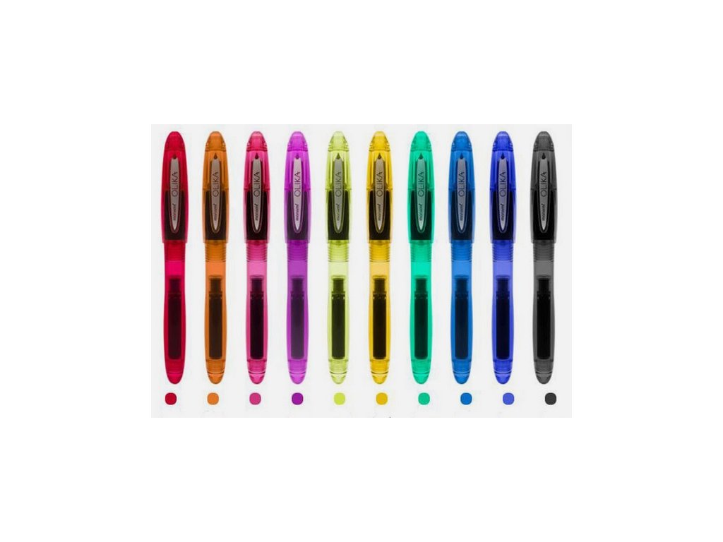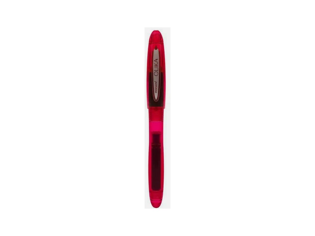 plnicí pero na bombičky • ergonomický úchop • plastové provedení s víčkem • odolný hrot síly F • na blistru pero s dvěma bombičkami ve shodné barvě inkoustu jako je pero • barva: červená • MONAMI OLIKA FPLU: 11374