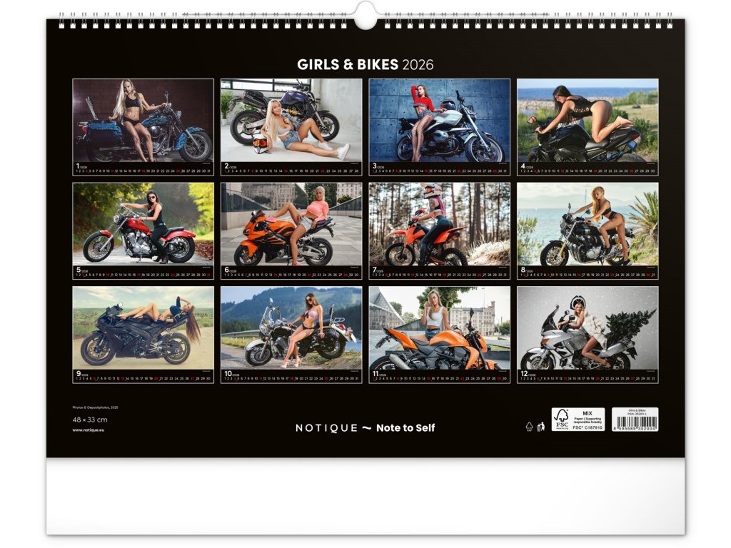 Nástěnný kalendář Girls & Bikes 2026, 48 x 33 cm