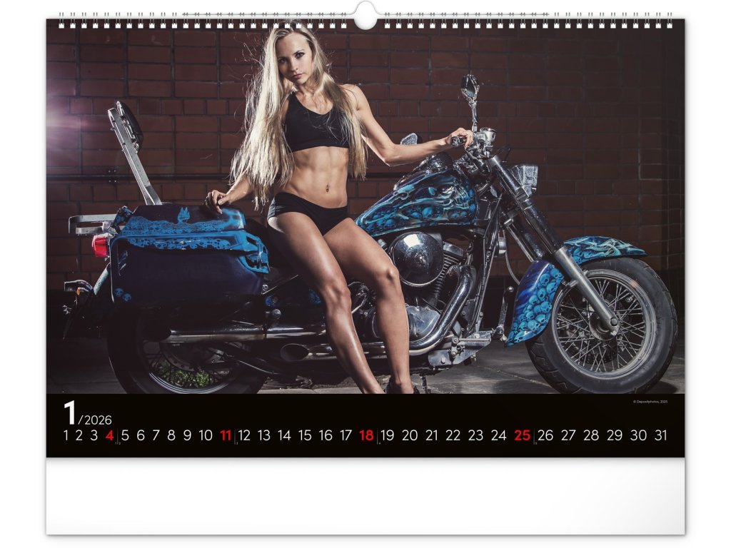 kalendář pro milovníky žen a silných strojů • na stránkách nástěnného kalendáře v šířkovém formátu pózuje dvanáct krásných dívek s nablýskanými motocykly • obsahuje univerzální kalendárium • rozměr: 48 x 33 cm • PGN-35200-LPLU: 183250