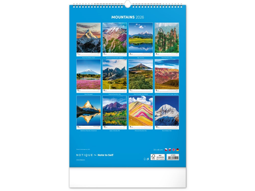 Nástěnný kalendář Hory 2026, 33 x 46 cm