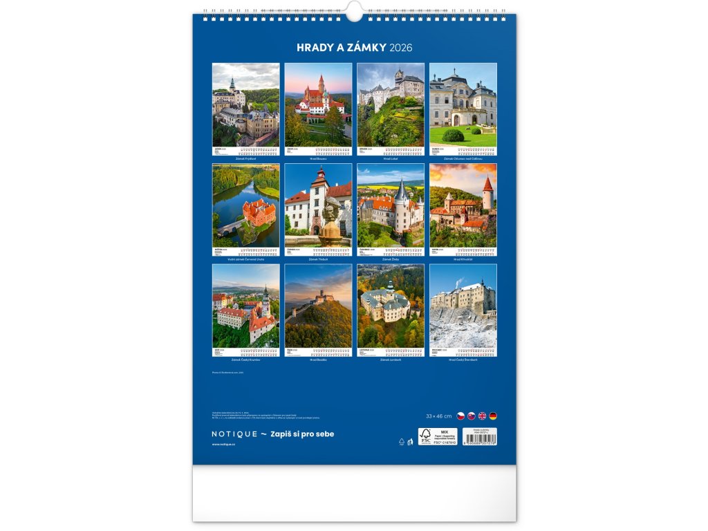 Nástěnný kalendář Hrady a zámky 2026, 33 x 46 cm