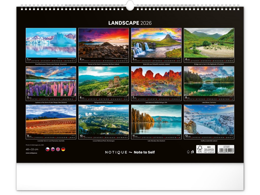 Nástěnný kalendář Krajiny 2026, 48 x 33 cm