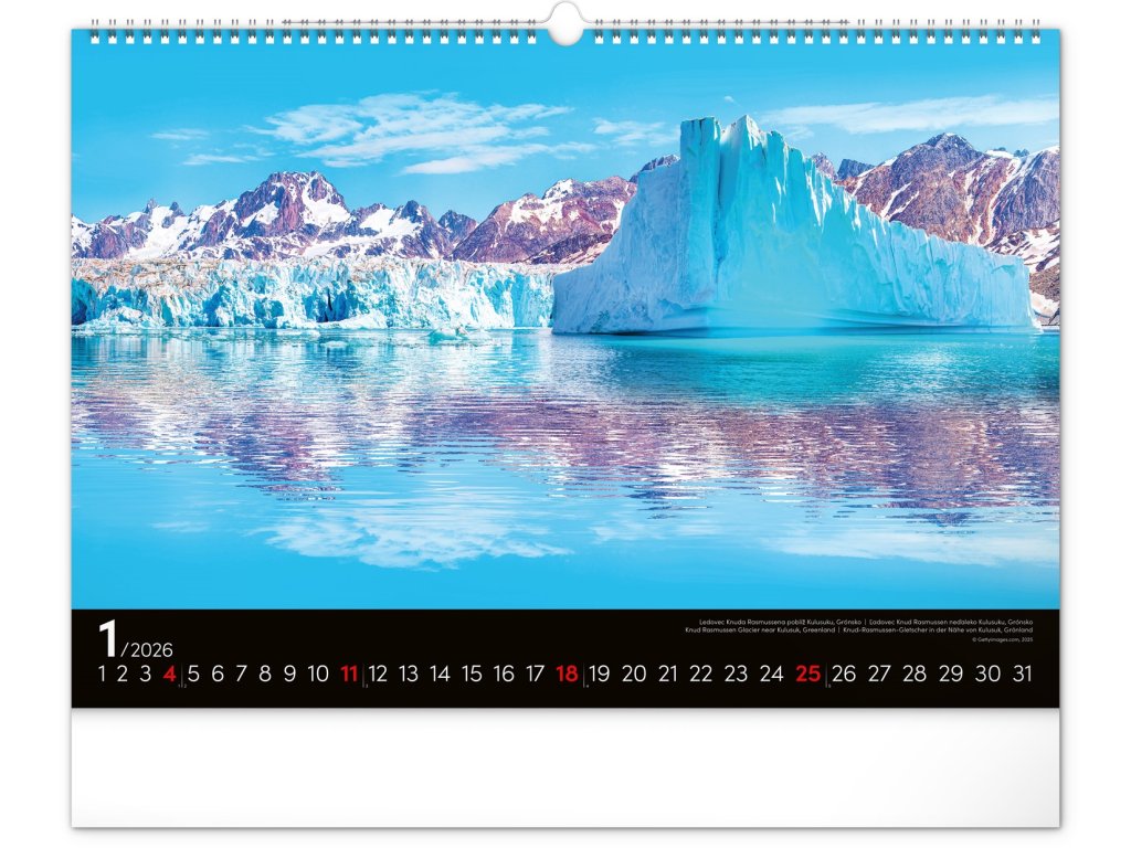 fotografie dvanáct pestrobarevných přírodních výjevů z celého světa • romantické záběry horských údolí i nížin, vodstev i pouští • jednoduché kalendárium na černém pozadí • rozměr: 48 x 33 cm • PGN-35195-LPLU: 189258