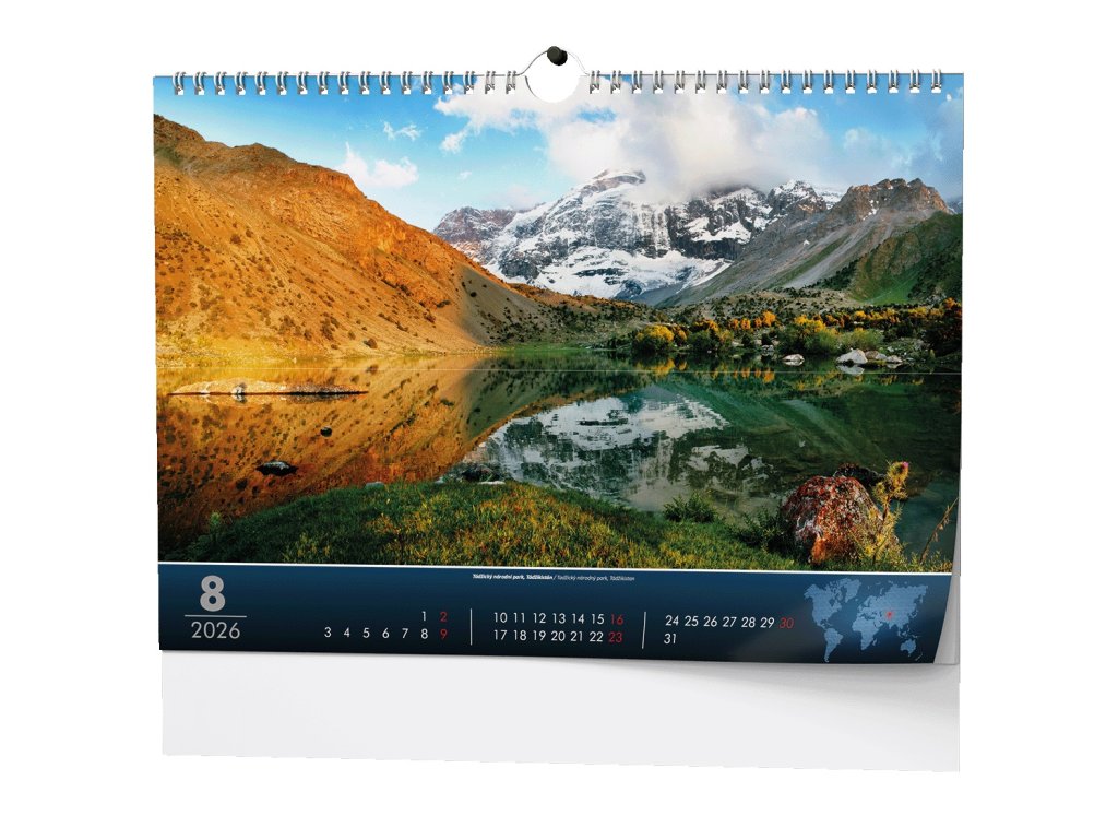 nástěnný kalendář s obrázky působivých světových národních parků • rozměr: 450x320 mm • vhodná technika potisku: sítotisk, UV tisk • BNK21-26PLU: 187832