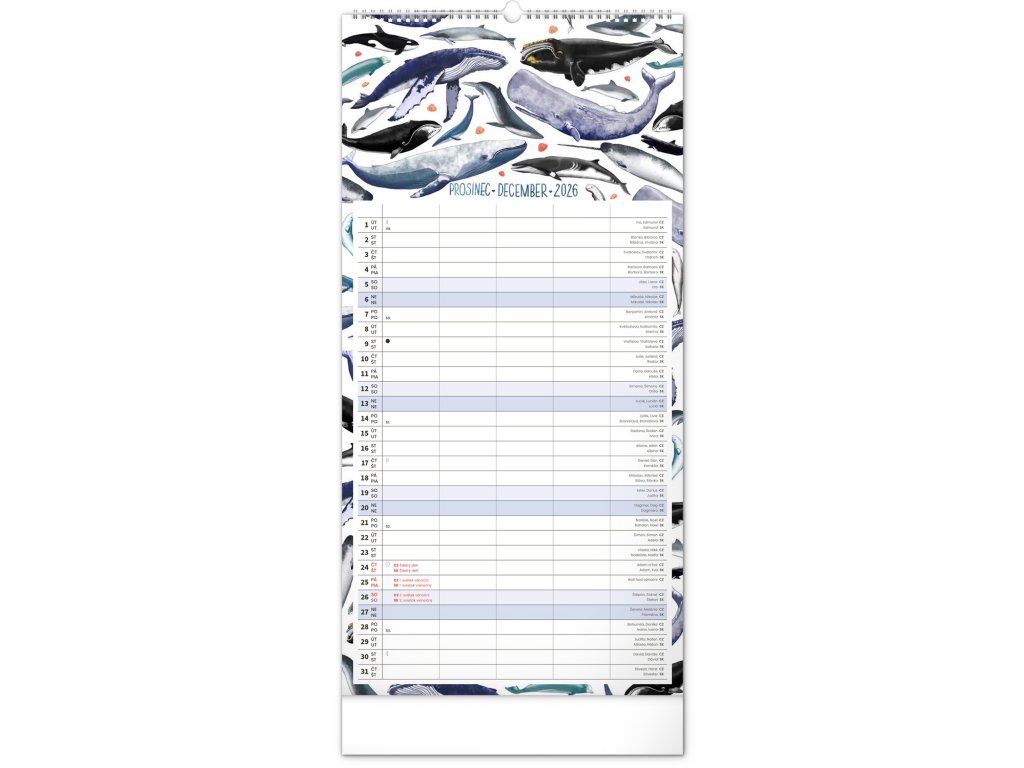 české a slovenské kalendárium a samostatný plánovač aktivit až pro čtyři členy domácnosti doplňují krásné ilustrace zvířat • nechybí státní svátky ani měsíční fáze • rozměr: 21 x 42 cm • PGN-35775-LPLU: 185548