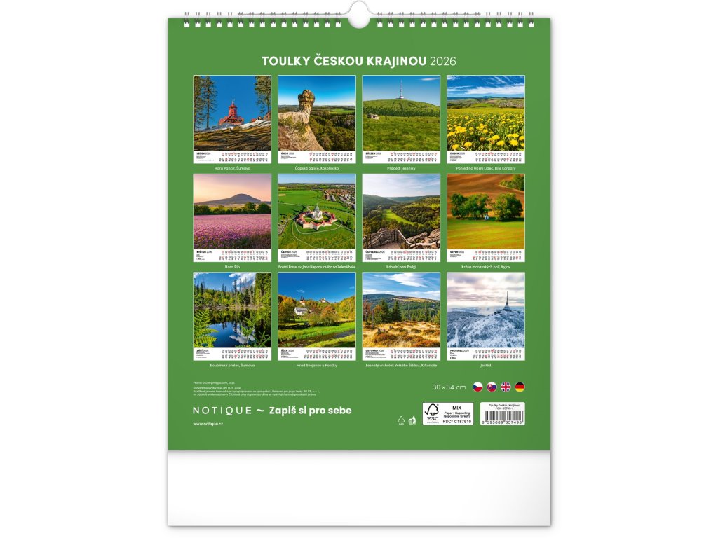 Nástěnný kalendář Toulky českou krajinou 2026, 30 x 34 cm