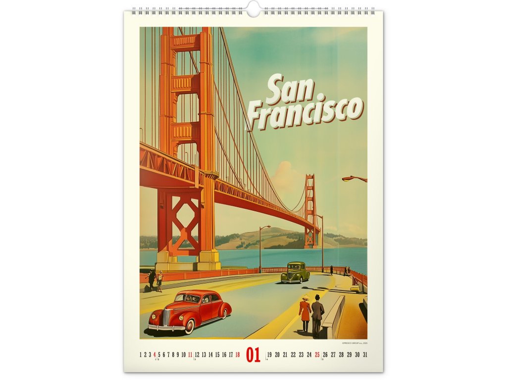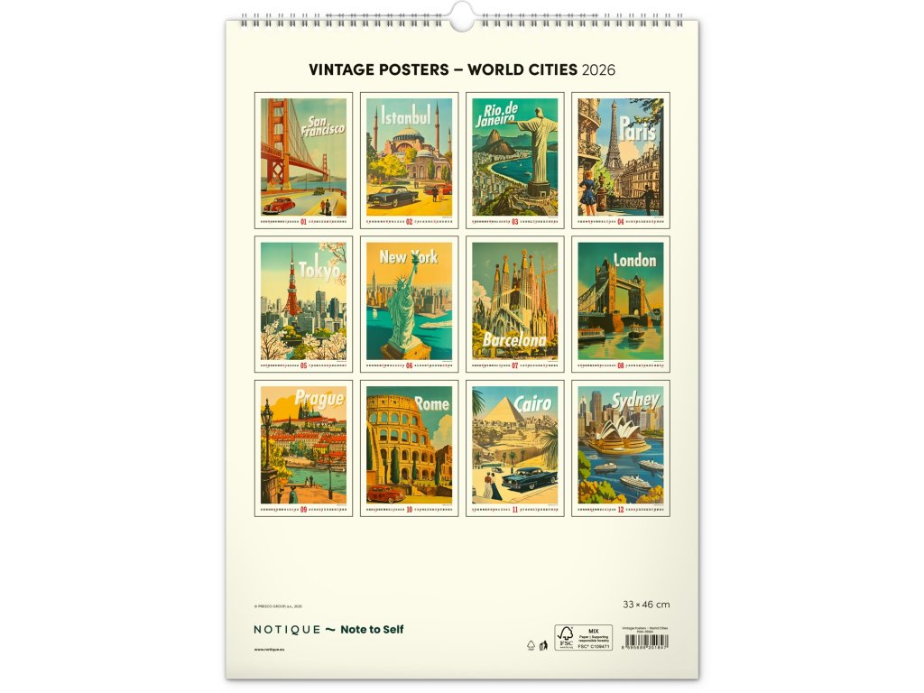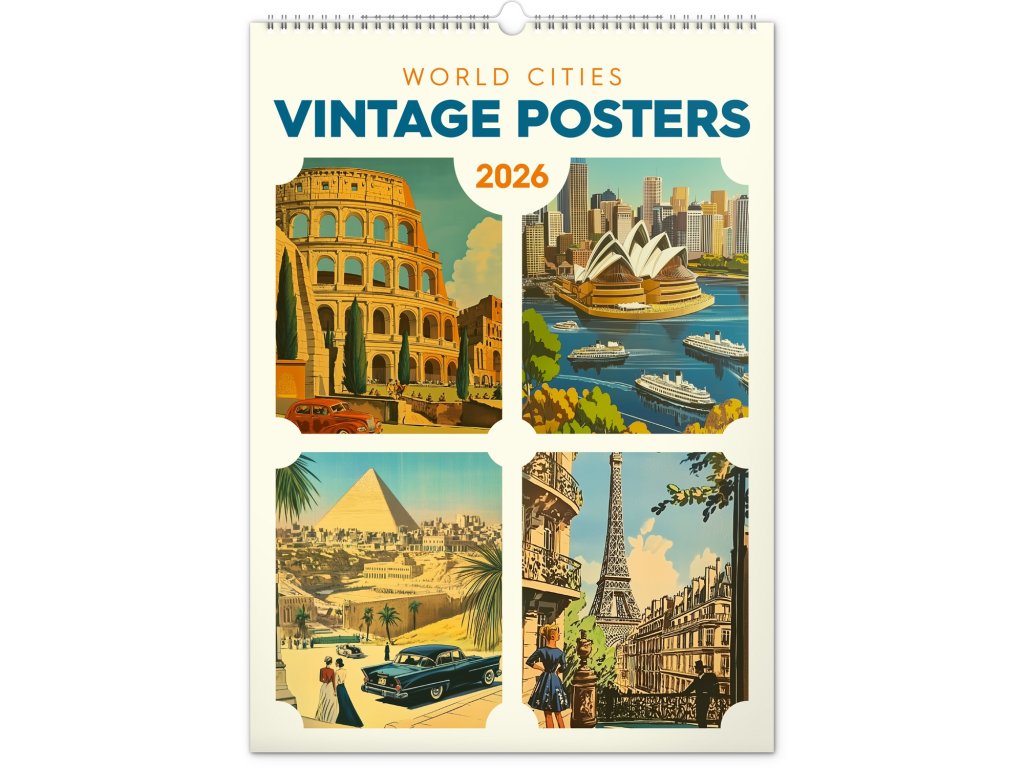 Nástěnný kalendář Vintage plakáty – světová města 2026, 33 x 46 cm