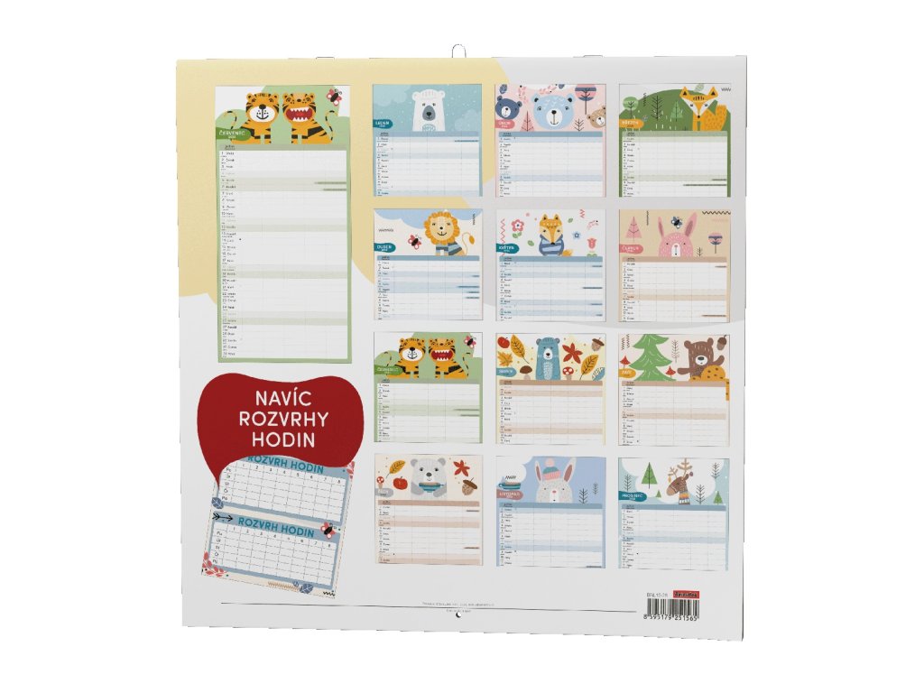 přehledný nástěnný kalendář pro to správné rodinné plánování • kalendárium: poznámkové kalendárium se státními svátky, měsíční fáze, roční období, letní a zimní čas, místo na poznámky pro členy rodiny • informační stránky: tabulkový kalendář aktuálního a následujícího roku, místo na poznámky, rozvrh hodin • rozměr: 285x285 ( 285x570 rozloženo) mm • BNL10-26PLU: 189634