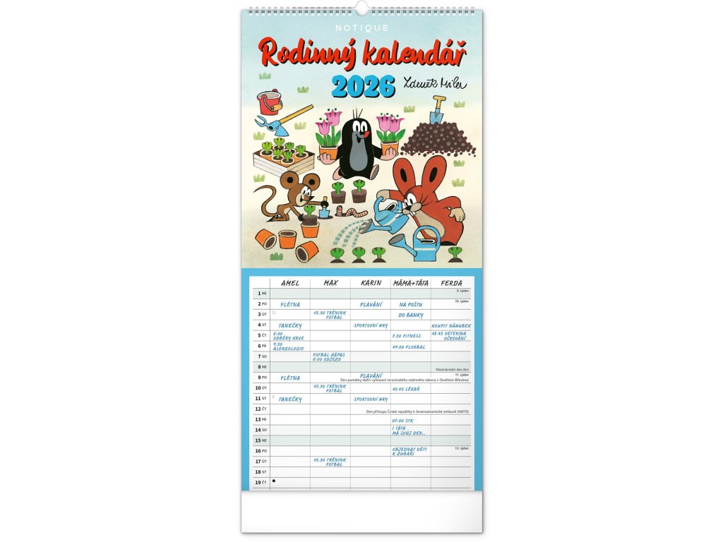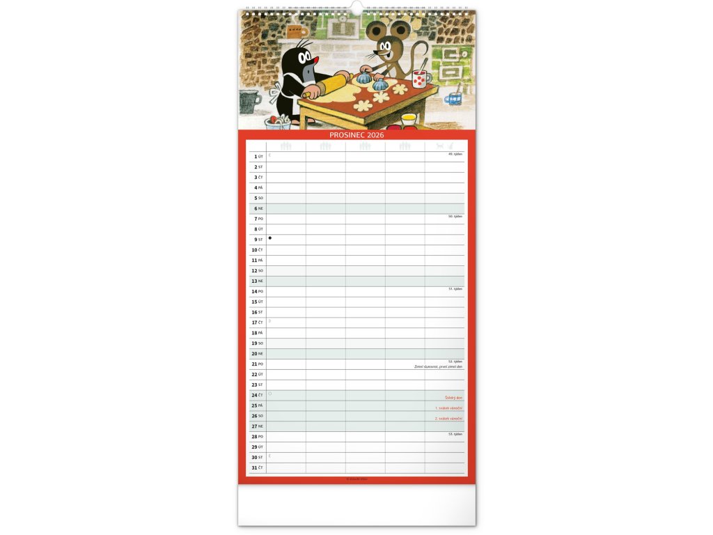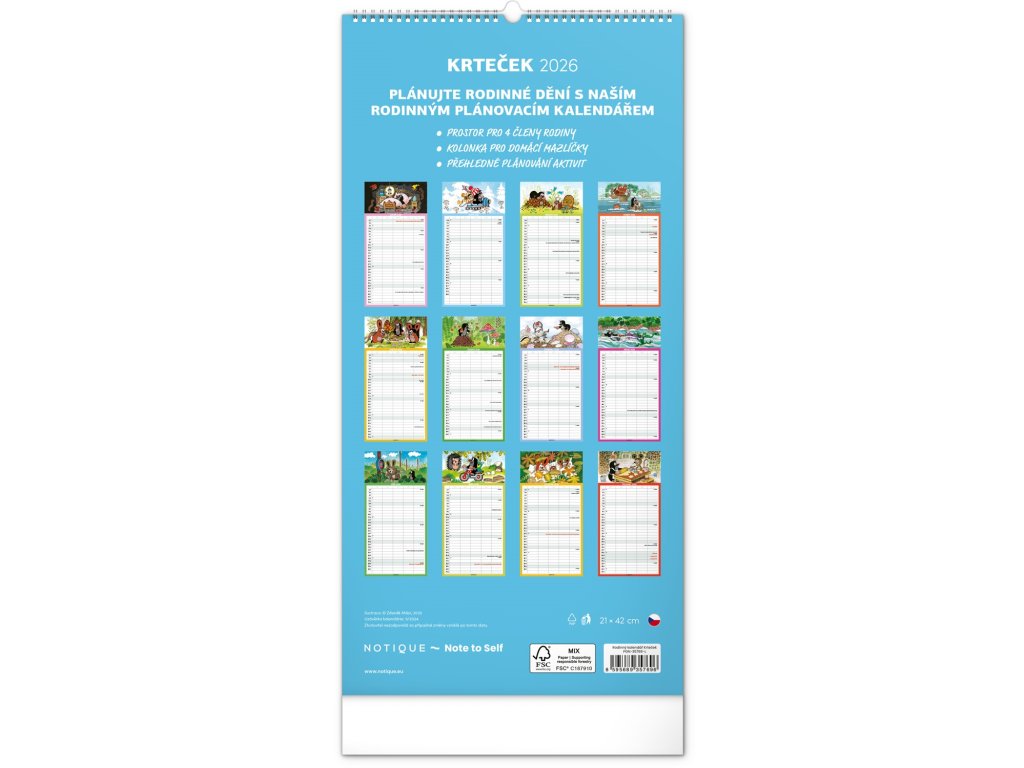 Nástěnný kalendář Rodinný plánovací Krteček 2026, 21 x 42 cm