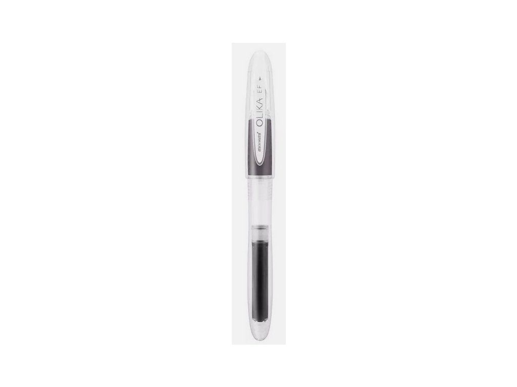 plnicí pero na bombičky • ergonomický úchop • plastové provedení s víčkem • odolný hrot síly EF • na blistru pero s dvěma bombičkami ve shodné barvě inkoustu jako je pero • barva: černá • MONAMI OLIKA EFPLU: 19105