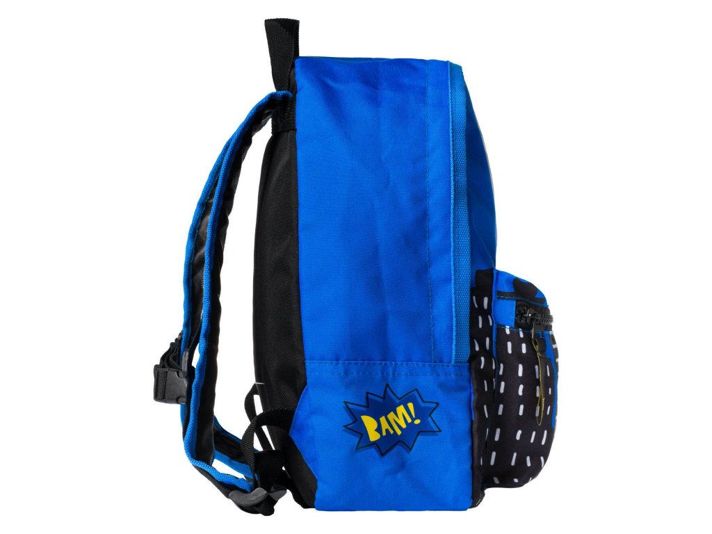 předškolní batůžek Batman modrý • lehký a pevný zároveň, takže s ním lehce zvládnete každý výlet • batůžek s jedním hlavním prostorem a přední kapsou • pevná polstrovaná záda • délkově nastavitelné polstrované ramenní popruhy • reflexní prvky • objem aktovky 5,5 l • vyrobeno z pevného voděodolného materiálu • materiál:100% PolyesterPLU: 3832