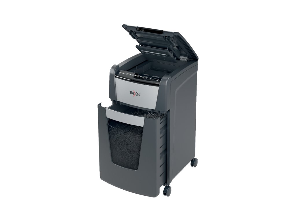 skartovačka s automatickým podavačem • ušetří vám až 98 % času skartace • automaticky skartuje až 300 listů papíru 80g/m2 • do ručního podavače je možno vložit až 10 listů papíru • skartuje v příčném řezu na částečky o velikosti 4x25 mm • automatický start/stop • pracovní šíře 230 mm • objem koše 60 litrů • 4číselný PIN kód pro otevření/blokování automatického podavače • řezací mechanizmus zpracuje i náhodně vložené sponky ze sešívačky a kreditní karty • automatické spouštění • průhled do odpadní nádoby, optická kontrola přeplnění papírem • tichý provoz • rozměry (ŠxVxH) 465 x 735 x 490 mmPLU: 159444