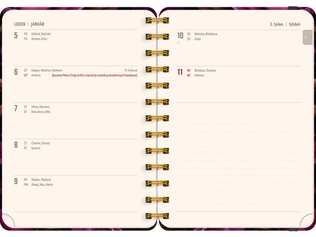 osmnáctiměsíční diář obsahuje přehled na rok 2025 a 2026, seznam českých a slovenských jmen, česko-slovenské týdenní řádkové kalendárium se jmény a svátky a prostor na poznámky • kalendárium začíná v červenci 2025 a končí v prosinci 2026 • rozměr: 13 x 18 cm • PGD-35530-VPLU: 185644