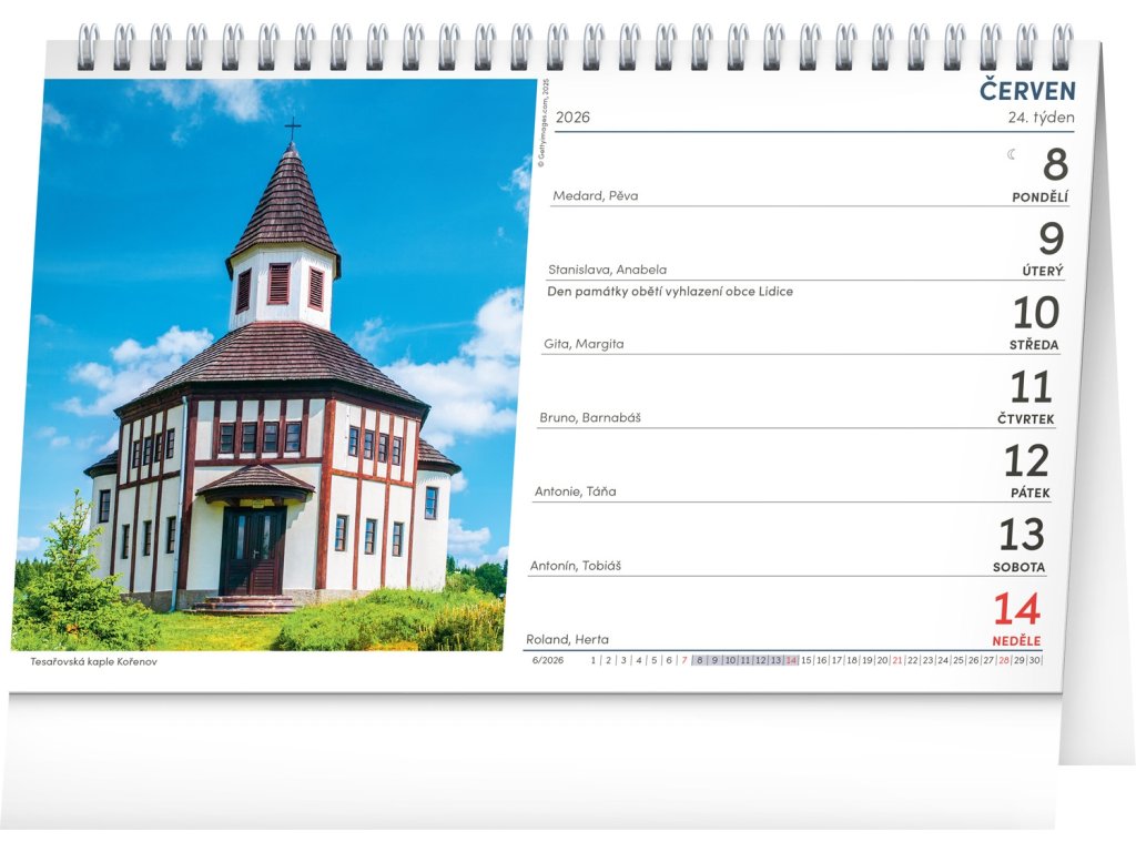 Stolní kalendář Krásy Čech a Moravy 2026, 23,1 x 14,5 cm