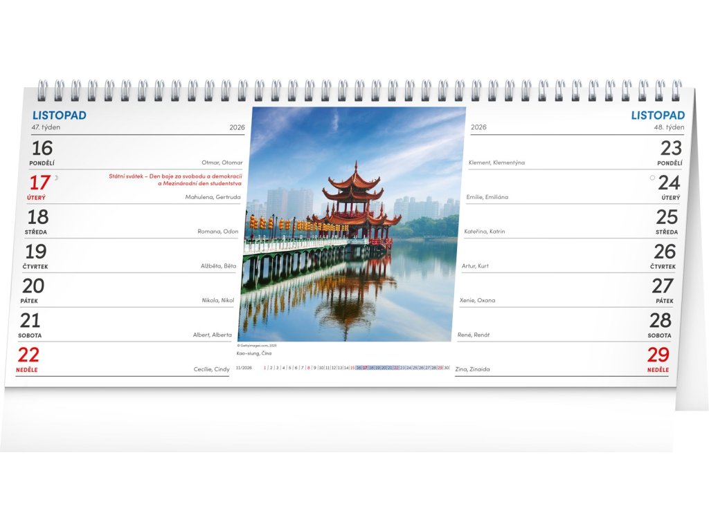 Stolní kalendář Města 2026 – 14denní, 33 x 14,5 cm