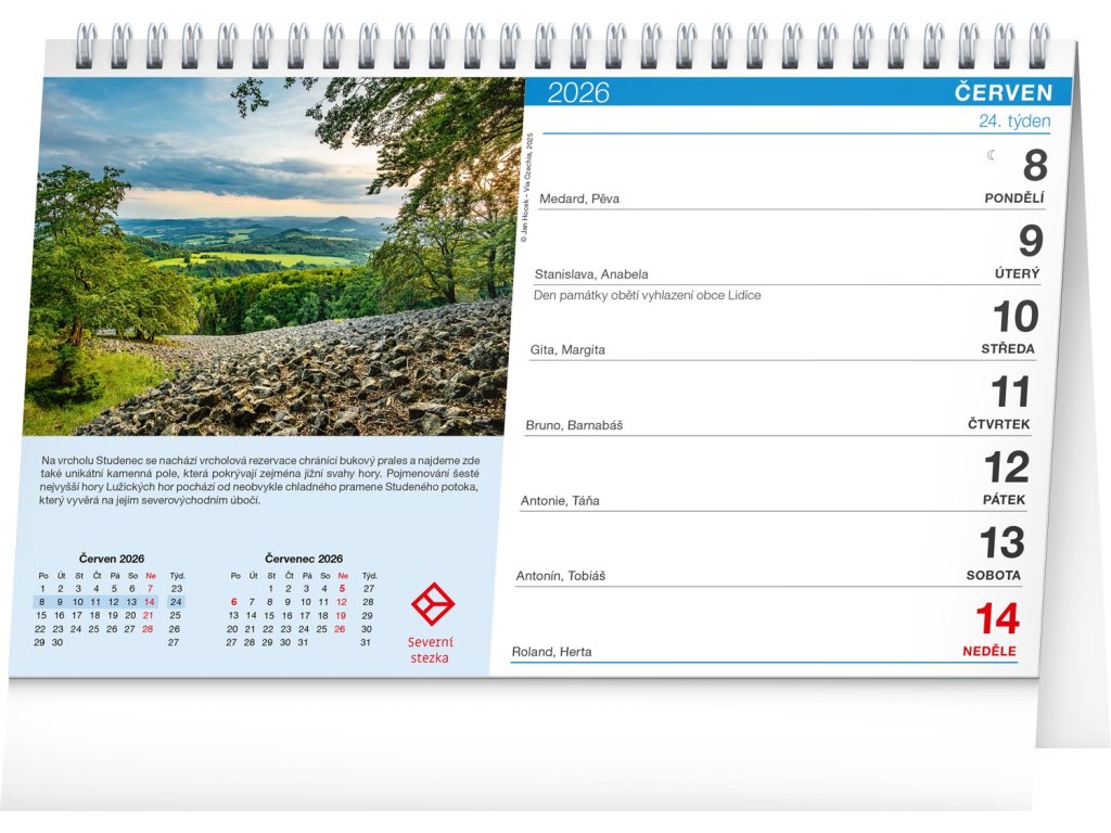 Stolní kalendář Po Česku stezkami Via Czechia 2026, 23,1 x 14,5 cm