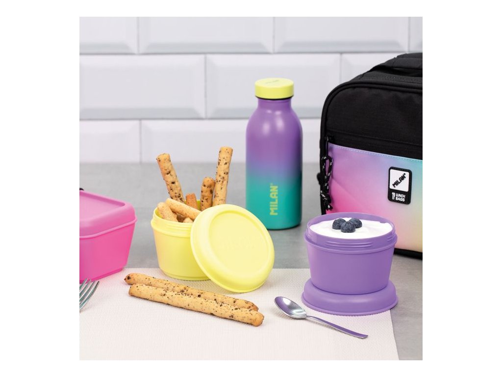 uzavíratelná kulatá krabička na oběd • šroubovací víčko poskytuje vzduchotěsné uzavření • vhodná pro ohřev v mikrovlnné troubě (max. 70st. C) s otevřeným víkem, aby se uvolnila pára • vhodná pro skladování v mrazničce (do -20st. C) • vhodná pro mytí v myčce (max. 70st. C) • matný vnější povrch pro lepší přilnavost, uvnitř s lesklým povrchem pro lepší čištění • materiál je plast bez BPA • rozměry: průměr 10 x 7 cm • kapacita 0,25 litru • MILAN 085112RNB svačinový box• MILAN 085112PR svačinový box • fialová barvaPLU: 15940