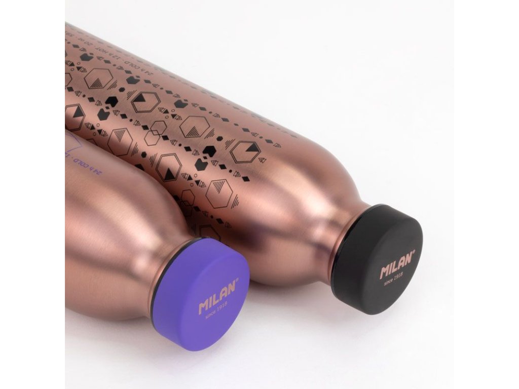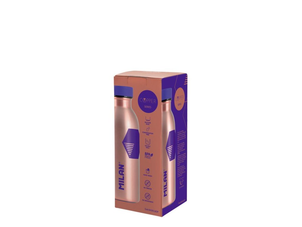 izotermická láhev z nerezové oceli • MILAN speciální Série COPPER • bronzová • kapacita 354 ml • izotermická láhev s dvojitou vrstvou z nerezové oceli pro udržení teploty kapaliny uvnitř • hermetický šroubovací uzávěr s polypropylenovým těsněním, když je obsah studený nápoj, zabrání se vnější kondenzaci • u horkých nápojů je teplota udržována uvnitř, přičemž vnější povrch je udržován při pokojové teplotě • udržuje teplotu tekutiny uvnitř až 12 hodin pro horké nápoje a 24 hodin pro studené nápoje • chráníme životní prostředí - používání opakovaně použitelných lahví přispívá ke snížení spotřeby plastů u jednorázových lahví na jedno použití • protiskluzová silikonová základna • MILAN 643012CPPLU: 17940