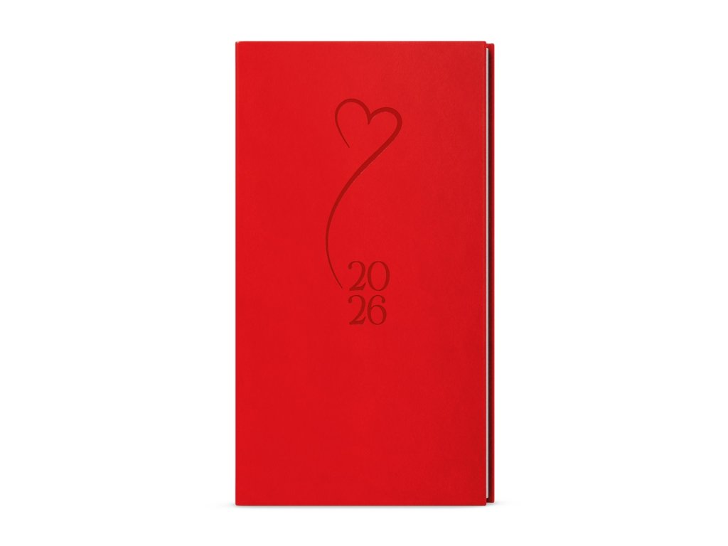kapesní týdenní diář v červené barvě je vyráběný z jemné hladké vivelly s efektní ražbou s motivem srdce • trendy a praktický doplněk do každé kapsy • diář má velký prostor pro poznámky a plánování • kalendárium: měsíční fáze, roční období, letní a zimní čas, znamení zvěrokruhu, řádkový přehled 2 měsíců, dny a měsíce v 4 jazycích - CS, SK, EN, DE, mezinárodní svátky: CZ, SK, A, D, PL, H, GB, E, F, I, UA • informační stránky: osobní údaje, přehledný kalendář aktuálního roku a následujícího roku, měsíční plánování aktuálního roku, plán dovolených aktuálního roku, jmenný seznam CZ/SK, mezinárodní svátky, roční plánovací kalendář CZ aktuálního roku, místo pro poznámky • rozměr: 75x150 mm • vhodná technika potisku: ražba, ražba přes pásku, sítotisk • BTJ61-6-26PLU: 187022